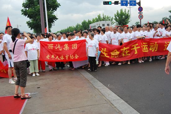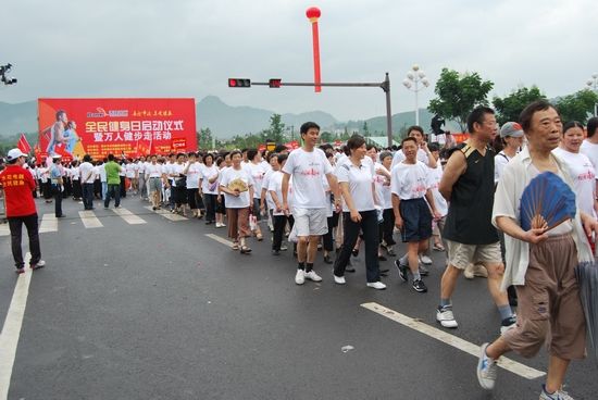 為慶祝全國首個“全民健身日”,8月7日上午7:00,麗水市“全民健身日”暨萬人健步走活動在市區南明湖濱水公園正式啟動。 集團公司組織了15名健身愛好者及60名老年體協成員參加了本次活動。 健步走隊伍在麗水市委書記陳榮高的帶領下,從濱水公園出發,沿著花園路-囿山路-宇雷路-江濱路返回濱水公園,盡管活動開始后不久,天空就下起了小雨,但是這絲毫沒能阻擋大家的熱情,隊伍冒雨堅持走完了全程。到達終點后,大家在印有麗水市“全民健身日”暨萬人健步走活動的橫幅上簽字。