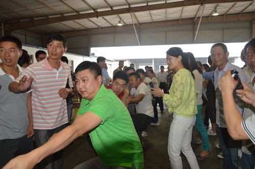 比賽在客運西站與南明物流的對決中首先開始。隨著裁判的一聲哨響,霎時間,加油聲和歡笑聲便響徹了整個修理車間。隊伍間實力相差懸殊的,裁判員比賽哨聲剛落,比賽就已經結束了,引來了一陣陣歡笑聲;實力在伯仲之間的,那可就精彩了,加油鼓勁的喊破了嗓子,大力士們也是漲紅了臉,累得渾身冒汗。