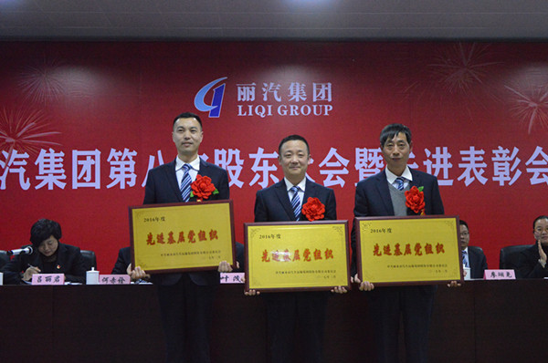 3月28日,麗汽集團第八次股東大會暨2016年度先進表彰會上,2016年度各類先進基層黨組織、優秀黨務工作者、優秀共產黨員;2016年度先進單位、先進班組、優秀員工;2016年度先進分工會、工會積極分子;2016年度先進團支部、優秀團干等接受了表彰。當各位先進人物(代表)從主席臺領導手上接到象征榮譽的獎牌或證書時,會場的氣氛再次被推向高潮。表彰大會號召麗汽集團全體員工以吳斌、章雙林等杰出代表為榜樣,克服困難,再創佳績,共同走出一條 “創業創新、健康發展”的麗汽之路。