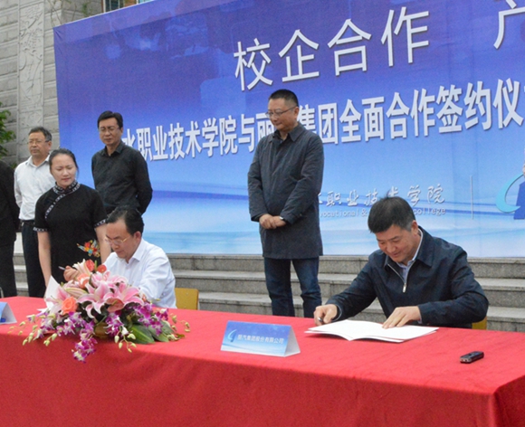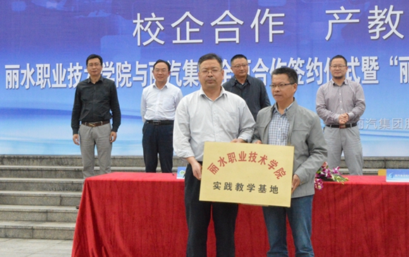 下午2時50分,麗汽集團總經理薛和有與麗水職業技術學院院長梁偉祥簽訂“校企合作”協議。