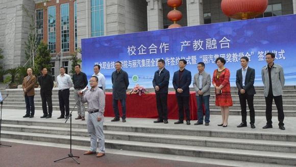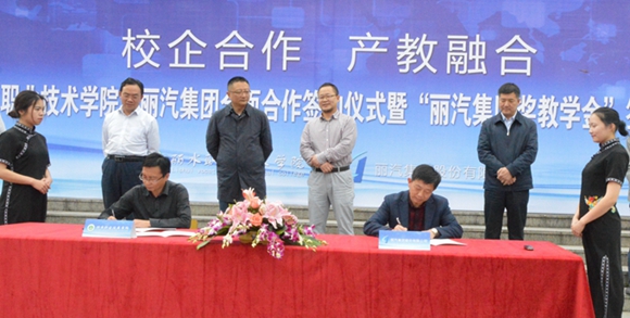 麗水職業技術學院是麗水本土培養專業技術人才的搖籃,麗汽集團作為一家有著八十多年歷史的企業,企業在轉型升級發展中對人才也是求賢若渴。通過 “校企合作”,學校和企業將加強彼此間教學和業務方面的交流,利用“產學研合作”和“工學結合”的方式,在汽車服務、旅游、傳媒文化、服裝共享平臺、會計等領域進行合作。學校將在麗汽集團建立“大學生實踐教學基地”和“人才培養及項目合作開發基地”,企業在麗水職業技術學院設立“麗汽集團獎教學金”、“麗汽訂單班”,深度融合企業的業務優勢和學校的教學科研優勢,促進高校師生人才的培養,為企業發展輸送優秀人才,提升企業的創新能力,實現校企共贏局面。