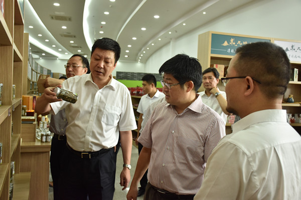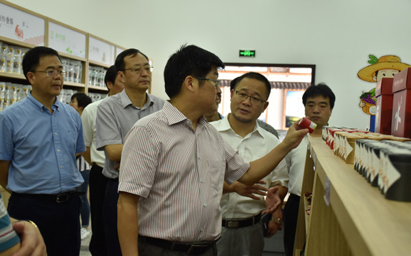 在九城山貨旅游地商品體驗中心,朱從玖副省長一邊聽取介紹,一邊仔細查看各類商品,也不時的詢問。