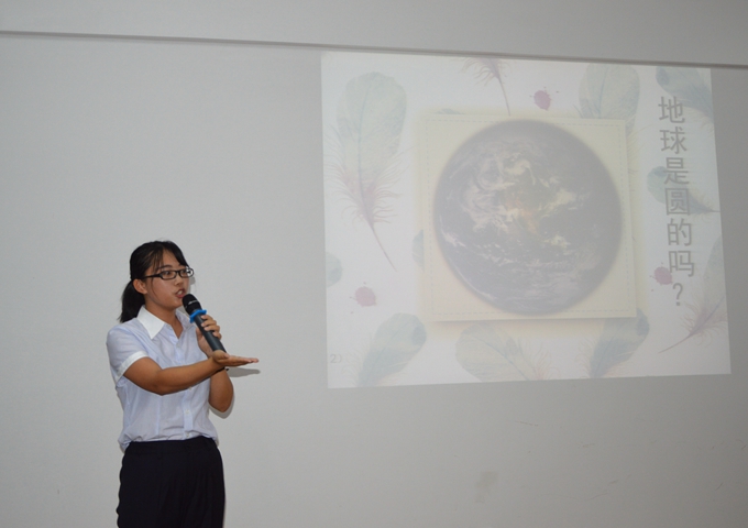 當時所有聽到這個開頭的人都笑了,我想在座的各位也一定在偷偷的笑著,看,這個傻姑娘,在想什么?地球不是圓的,難道是方的?(笑)