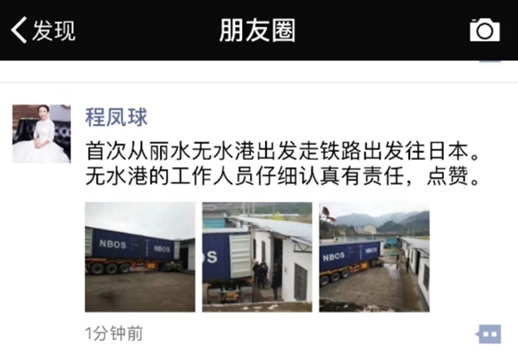 “首次從麗水無水港出發走鐵路出發往日本,無水港的工作人員仔細認真有責任,點贊?!边@是麗水春子農業裝箱后老板發在朋友圈上的。大家都表示能得到客戶的認可和信賴是對我們工作最大的肯定,再苦再累都值得。