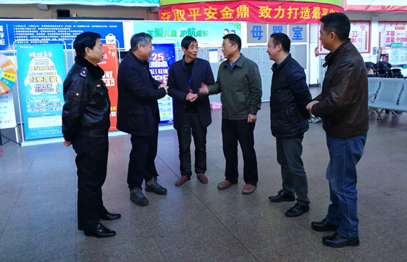 2月12日上午,市交通運輸局局長葉旭勇、副局長葉利東,市交通運輸局副局長、道路運輸管理局局長龔啟賢等領導來客運東站檢查春運工作,長運(東站)領導梁巍、江小華等陪同檢查。