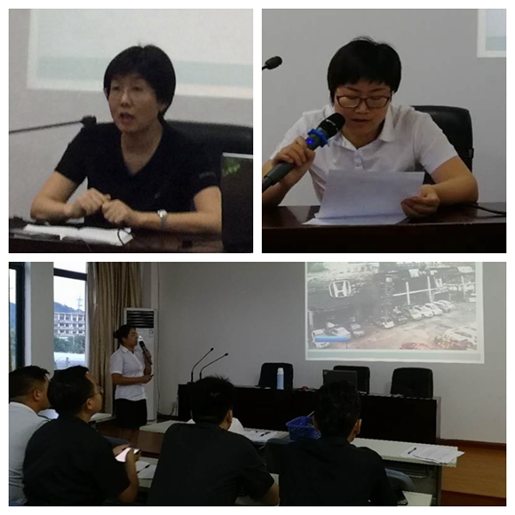 動員大會后,行綜合部經理陳艷紅結合4S店的實際情況和目前在存在的一些安全短板問題,帶領與會人員重點學習了《新安全生產法》中有關從業人員的權利和職責、安全生產的重要性、常見事故發生原因及預防和處理,火災形成的原因、急救及逃生方法等方面的內容。