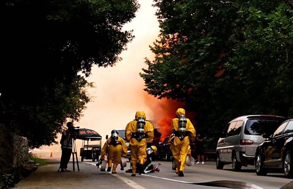 消防隊員趕赴危險區域