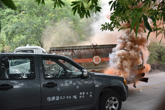 這是在2018年度麗水市道路運輸突發事件應急處置演練現場發生的“驚險”一幕。