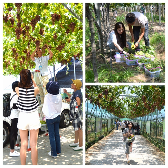 “這個好甜!” “我喜歡這個品種的味道!”學員們一到達葡萄園,工作人員們就端來了沏好的端午茶和剛采摘的新鮮葡萄……學員們迫不及待的品嘗起來。