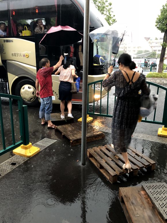 中秋佳節前夕,午后一場突如其來的滂沱大雨,地面積水一下子沒到了腳踝處,將麗水高鐵站的上車點堵住了。從高鐵下車轉乘客車的旅客上車成了一個大難題,幾位女乘客躍躍欲試,立刻又縮了回來。