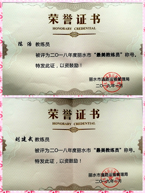 近日,麗水市道路運輸管理局印發了《關于表彰2018年度“文明示范駕培學?!奔啊白蠲澜叹殹钡耐▓蟆?,麗汽汽校在評選活動中脫穎而出,順利通過評審組復評,再次榮獲年度市級“文明示范駕培學?!睒s譽稱號,這也是我校連續六年榮獲此項殊榮。同時,麗汽汽校的陳浩、劉建武兩位同志獲得2018年度麗水市“最美教練員”稱號。