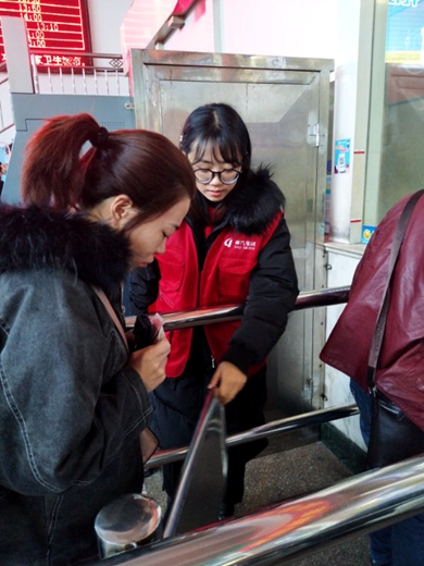 哪里需要哪里就有身著“紅背心”志愿者的身影,進站口,志愿者們幫旅客搬運行李;無人售票機前志愿者指導旅客自助購票;人工售票處前志愿者有序維護秩序……