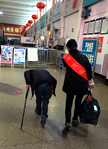 2月15日春運還在繼續,我們的溫情故事仍在上演。13:00,東站的服務臺還是有些忙碌,服務員鄭淑燕剛為一位旅客辦完行包寄存,突然聽到一聲“這里能買票嗎?”鄭淑燕隨即環顧四周,卻看不到一個人,“哪里發出的聲音?”正當鄭淑燕納悶時,服務臺上出現了一只手拿一張百元鈔票的手,鄭淑燕隨即探頭去看,一個彎著背,身材矮小的中年男子出現在鄭淑燕面前。在問清了該旅客要去的目的地后,鄭淑燕到售票窗幫他買好了車票,看到他還有一個包,鄭淑燕主動提出幫他提包,送他上車。旅客客氣地說:“不用了,我慢慢走可以拎得動的?!笨粗粤Φ貥幼?,鄭淑燕二話不說,從他手中接過包,跟在他旁邊慢慢地走,一直送他到檢票口。到了檢票口,鄭淑燕又交代檢票員檢票時幫助這名旅客先檢票上車。