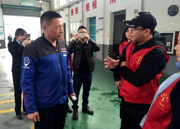 麗水伊翔副總經理劉道美給前來參加交流的消費維權義工們介紹了伊翔公司概況、服務流程、配件正副產件區別及公司推行的明白消費服務情況,讓參加交流會的代表們對4S店的構架、服務和明白消費有了基本的了解。隨后一行人前往車間,由公司售后人員現場講解了車輛維護保養的一些日?;静僮鞒WR和注意事項,并現場向志愿者們答疑解惑。