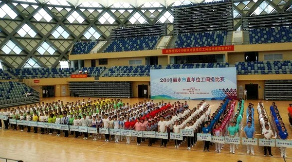 5月29日下午,由麗水市體育局、麗水市總工會主辦的2019年麗水市直單位工間操比賽活動在市體育中心體育館舉行,共有來自市直各單位的28支代表隊參加了比賽。