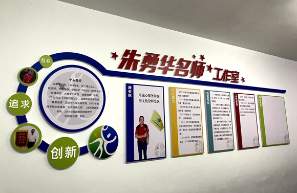 8月8日,旅游集散中心有限公司 “朱勇華名師工作室”的墻面布置完成,標志著名師朱勇華有了自己的帶徒工作室。