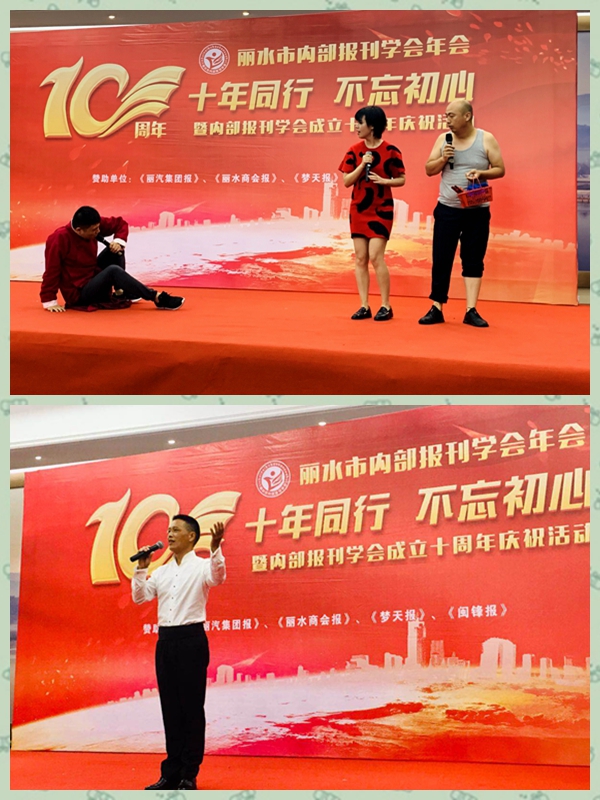 今年是建國七十周年,也是麗水市內部報刊學會成立十周年,為此,學會舉行以“十年同行,不忘初心”為主題的慶?;顒?。會長呂麗君熱情洋溢的致辭,理事單位成員集體朗誦的浙西南革命精神篇--《用信念照亮奮斗之路》拉開了慶?;顒有蚰?。集團公司選送的小品《賽諸葛》、獨唱《此時此刻》,還有《青田僑鄉報》、《閩峰報》等選送的節目和現場抽獎環節,慶?;顒痈叱钡?,氣氛活躍。