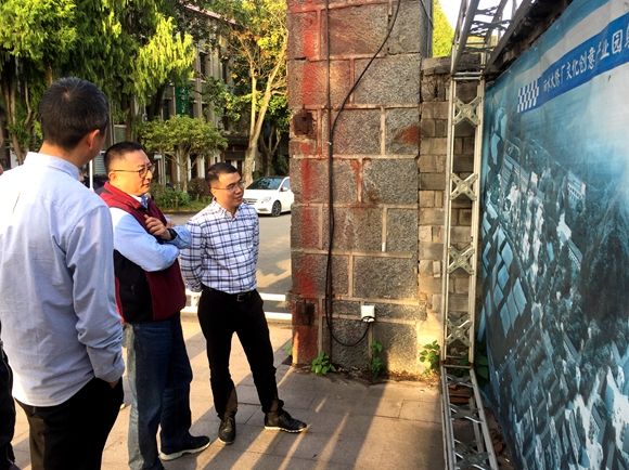 10月29日下午,麗水職業技術學院黨委書記梁憶南、副書記劉建榮一行,專程蒞臨大修廠文創園交流指導。集團公司黨委書記、董事長黃偉君,副總經理林周穎等陪同參觀。一行人實地參觀了整個園區布局。黃偉君詳細介紹了園區外圍的規劃道路、在建樓房以及其他政府配套設施,園區內經營業態、入駐率等相關情況。