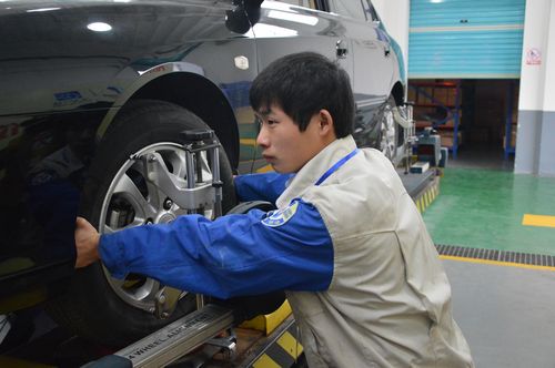 早上8:30分,準時開賽,選手們個個精神抖擻上陣,準備一展身手。只見他們熟練展開四輪輪胎磨損情況、四輪動平衡及鋼圈輪胎變形情況檢查等一系列操作。臺上選手們比技能,臺下其他修理工饒有興致地觀摩學習。