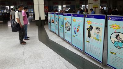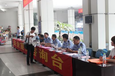 活動現場懸掛了安全生產宣傳標語,設置了安全咨詢臺,并在候車室前廳、中廳等人員聚集的位置,放置了各類以安全為主題的宣傳版畫,圖文并茂的向旅客宣傳了防詐騙、交通、防恐等安全知識。在整個活動期間,到咨詢臺來現場咨詢的旅客絡繹不絕,各單位咨詢人員還向旅客發放了《平安交通 人人有責》、《警民相約 共建和諧》、《公民防范恐怖襲擊手冊》、《為防范與遏制“電信(網絡)詐騙犯罪”致市民的一封信》等十余種安全生產宣傳資料共計2000余份,營造了安全生產月活動的良好氛圍。