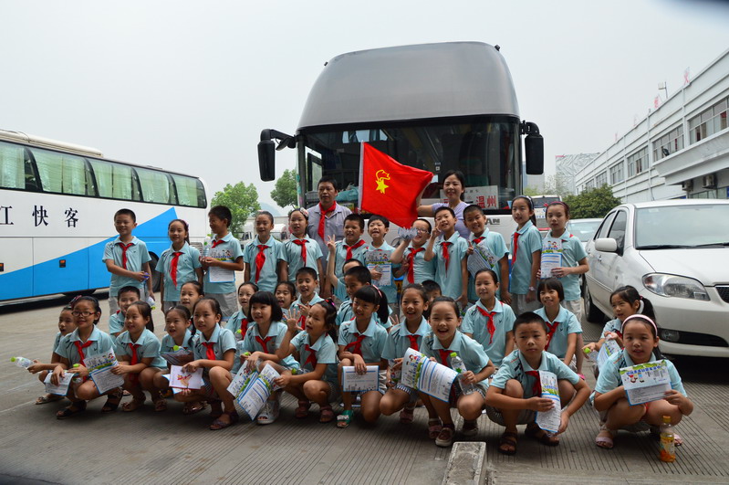 在客運西站中廳里,面對模范司機吳斌的宣傳事跡圖片,小同學們不由的齊聲朗讀了起來,心里充滿了崇敬之情。在見到“最美浙江人”、“模范司機”吳斌后,小學生們更是高興的為吳斌叔叔戴上了紅領巾、獻上了美麗的鮮花。吳斌叔叔也親切的與小朋友們進行了交談,并告訴他們出行一定要注意安全,要自覺遵守交通法規。