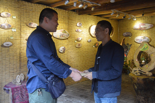 今天下午,章雙林帶著5000元愛心款,專程冒雨從麗水趕往古堰畫鄉,看望雷發榮并勉勵他勇敢地與病魔作斗爭,希望他早日康復。