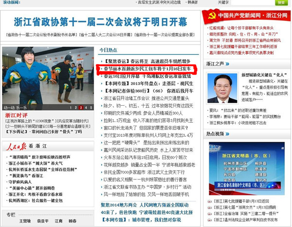 人民網:《2014春節麗水首趟返鄉民工包車將于1月16日發車》http://zj.people.com.cn/n/2014/0113/c186327-20376655.html