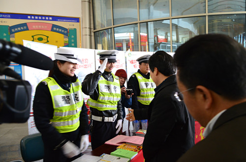16日上午,集團公司與市交警支隊、高速交警支隊、市運管局等單位在客運西站舉行春運啟動暨問計于民活動。(宣教部  蘭寧)