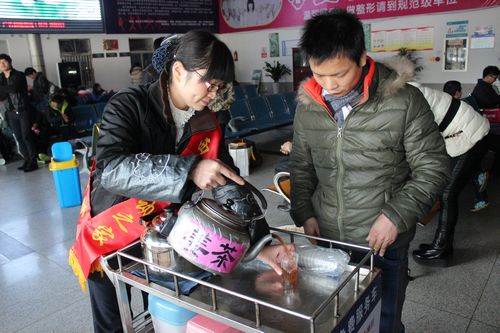 昨天進入到大寒節氣,今天馬上就有一股冷空氣來應景,氣溫有小幅的下降。一大早西站“流動之家”服務班的姐們就準備好一大壺熱氣騰騰的姜茶,免費為候車大廳的旅客送上熱姜茶,幫助他們驅去寒意,溫暖回家的旅程。