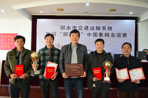 11月30日,麗水市交通運輸系統首屆“麗汽杯”中國象棋友誼賽經過兩天的七輪角逐,最終,麗汽集團代表隊獲得團體冠軍,隊員徐勇明、陳良根、吳連周、何銀龍分別獲得個人第一、第二、第四、第六名的好成績。