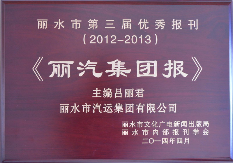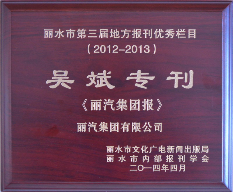 在5月23日召開的麗水市內部報刊學會年會上,麗汽集團被授予麗水市內部報刊學會副會長單位,《麗汽集團報》和《麗汽集團報--吳斌??贩肢@表彰為麗水市第三屆優秀報刊和麗水市第三屆地方報刊優秀欄目。