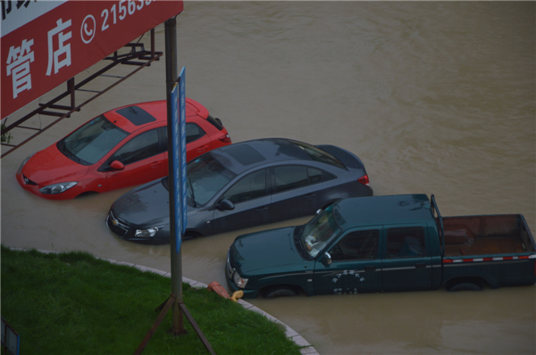 集團公司公會主席呂麗君走到小轉盤路口時,大水已經沒過大腿