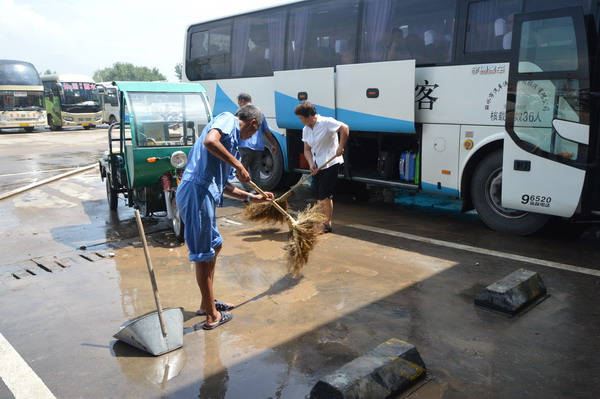 在客運東站全體員工的共同努力和兄弟單位的共同幫助下,災后第二天,客運東站就恢復了正常運營。為徹底清除災后留下的站場內外衛生死角,22日,東站黨支部繼續組織全體黨員和團員對東站災后的站場內外衛生進行了打掃。