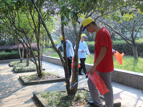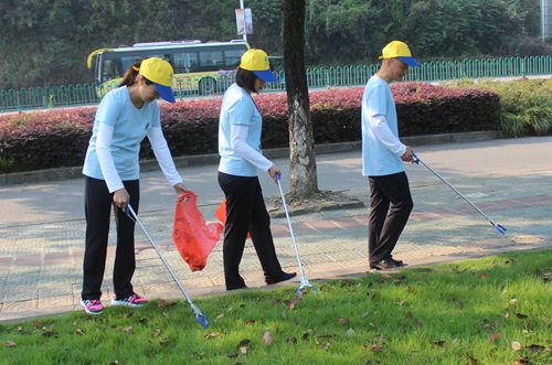 儀式結束后,大家立刻進行了分組行動,清撿地面垃圾和煙頭,對不文明行為及時進行勸阻。