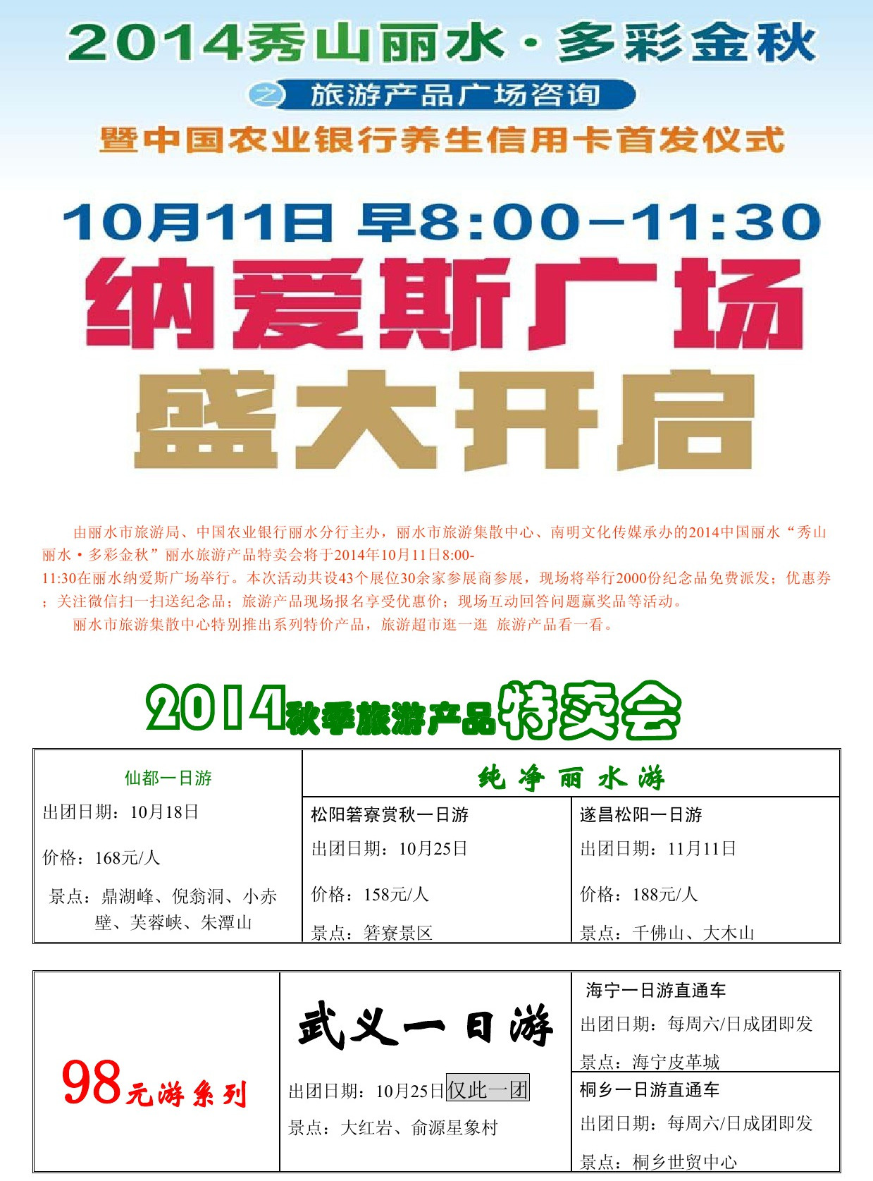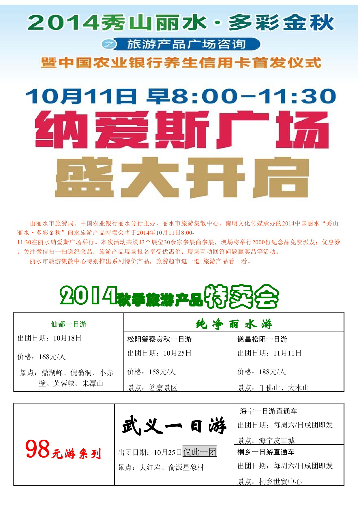 2014秀山麗水多彩金秋旅游產品咨詢會明天舉行
