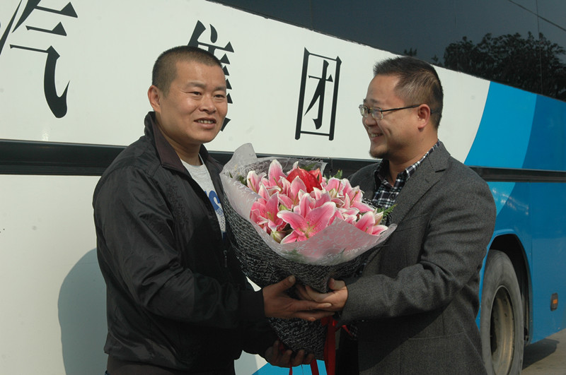 11月4日上午一上班,麗汽集團董事長、黨委書記葉茂和工會主席呂麗君就專程來到客長運分公司,看望慰問章雙林師傅。董事長葉茂親自給章雙林師傅遞上鮮花,贊許這位“最美司機”,稱他是麗汽集團1500多名員工學習的榜樣。