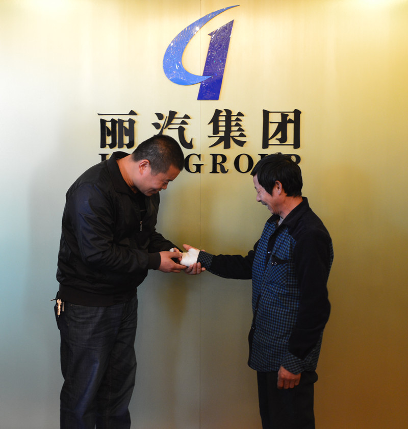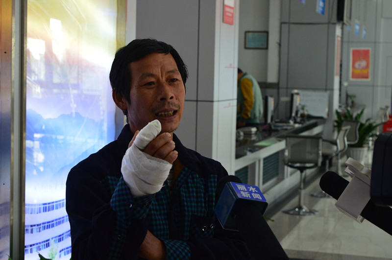 11月7日上午,受傷乘客雷先生到麗水中醫院換好藥后,就直接到麗汽集團,專程來感謝奪刀救他的司機章雙林。