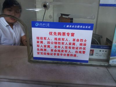 6月5日,走進客運東站的候車大廳,細心的旅客就會發現,售票窗口新增了老人優先購票的溫馨提示,以及每排候車座椅都設置了兩個老人專座。原來,這是客運東站根據麗水市政府〔2006〕28號精神,為進一步方便老年旅客到東站購票、候車,而在開設特殊旅客購票窗口和綠色通道的基礎上增設的老人購票專窗、老人專座。