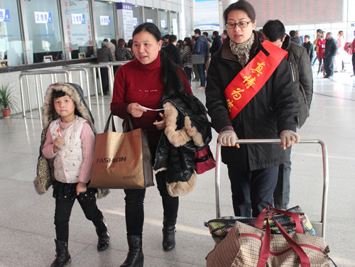 隨著2月4日“青春志愿行,溫暖回家路”2015年志愿者服務春運“暖冬行動”的啟動,2月5日,客運西站黨員志愿者服務隊和“流動之家”志愿者服務隊也正式拉開志愿者服務春運“暖冬行動”的序幕。志愿者們將在整個春運期間,在售票廳、進站口、服務臺等位置,為旅客提供咨詢、引導、扶老攜幼,自助售票導購等服務。