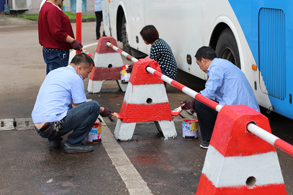 為響應總公司“開源節流,挖潛增效”的號召,也為配合客運東站的“安全生產月”活動,發揚“自己動手,豐衣足食”的勞動精神,在東站黨支部委員金旭陽的倡導下,東站的黨員、團員、入黨積極分子及普通員工在6月5日上午早早地來到東站,進行第二波自己動手挖潛增效活動,利用自己的休息時間對東站年久褪色的隔離墩進行油漆刷新。