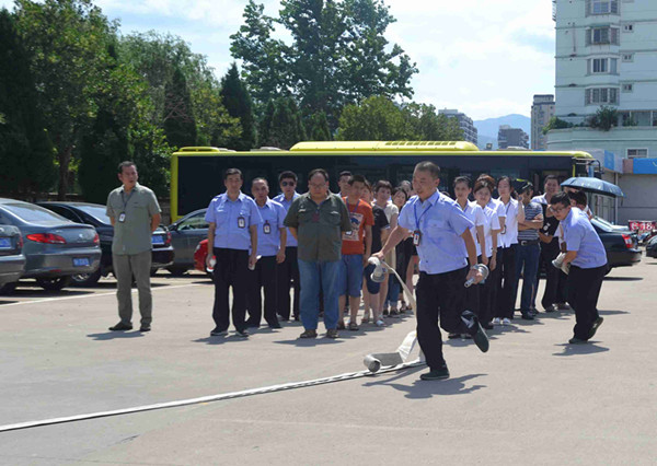 炎炎烈日下,客運東站的經理室、辦公室、財務室的全體職工和保衛稽查科、業務站的部分一線工作人員在演練現場排成三列參與了此次的消防演練。集團公司保衛稽查部、安全部、客長運公司、駐站運管站、車站派出所等單位觀摩了演練。