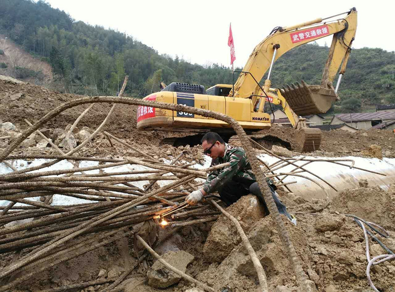 修理工陳健和葉仕林組裝好氣割設備后,將鋼筋切隔分段,金旭陽和吳天軍兩人則和現場的消防、武警戰士一起將切割好的鋼筋搬離現場。在搬鋼筋的過程中,他們的腳陷入了泥潭,手被鋼筋磨出了水泡,汗水濕透了衣服,但誰也沒有吱一聲。經過眾人馬不停蹄的3個多小時的努力,被掩埋的二十多噸鋼筋全部按要求搬離。