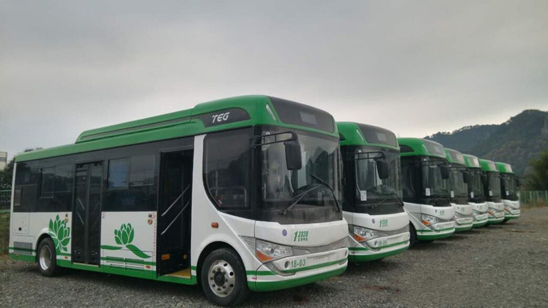 純電動公交車成為新一代公交低碳、環保的代表,推廣新能源汽車是我市改善大氣環境、提升城市品質的重要舉措。該批14輛型號為TEG6850BEV01的純電動公交車長8米、座位數21座、載客66人,于2015年11月20日完成新車上牌手續,正式落戶城鄉公交公司。由于目前充電樁正在建設當中,新能源公交車有望在2015年12月投入公司K18路的運營。