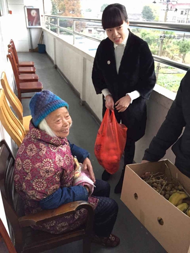 當我們的團員為老人捧上水果時, 老人們甚至微笑著流下感動的淚水,看著老人們眼含淚花的樣子,我們的內心有股莫名的心酸,也為自己參加今天的活動而感到激動和自豪。