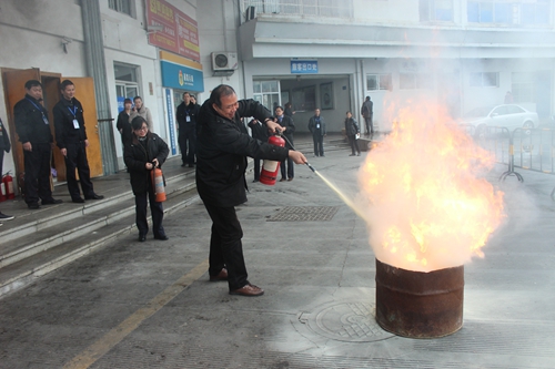 本次演練分為集中學習和火災撲救演練兩部分。首先由保衛稽查科科長潘峰為大家講解了西站《滅火應急預案》和干粉式滅火器的使用方法,使大家進一步熟悉火災救援、報告等相關程序和干粉式滅火器的操作方法。然后趁熱打鐵,現場利用鐵桶點起明火,由全體參演人員輪流使用滅火器將明火撲滅,強化員工的應急處置能力,使他們在面對突發火情時不會慌亂,能沉著應對。