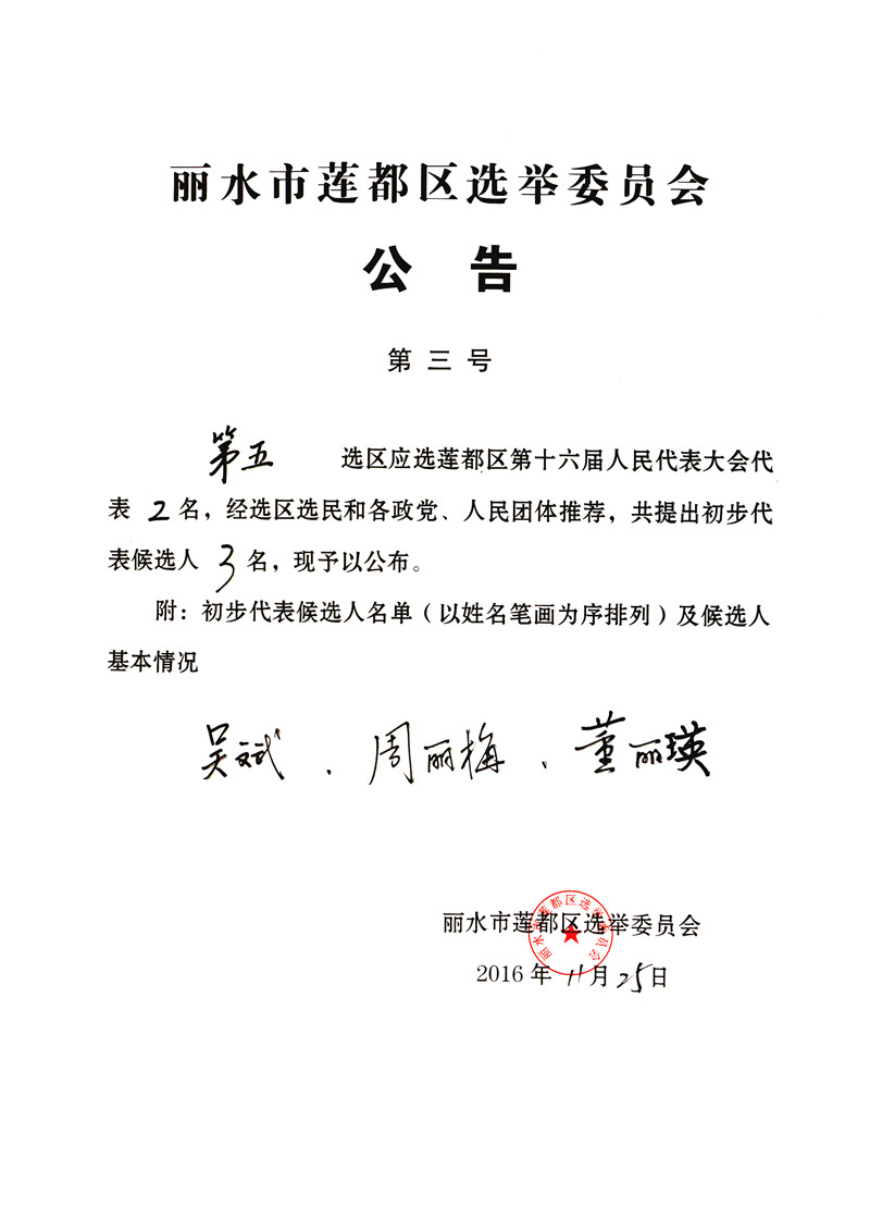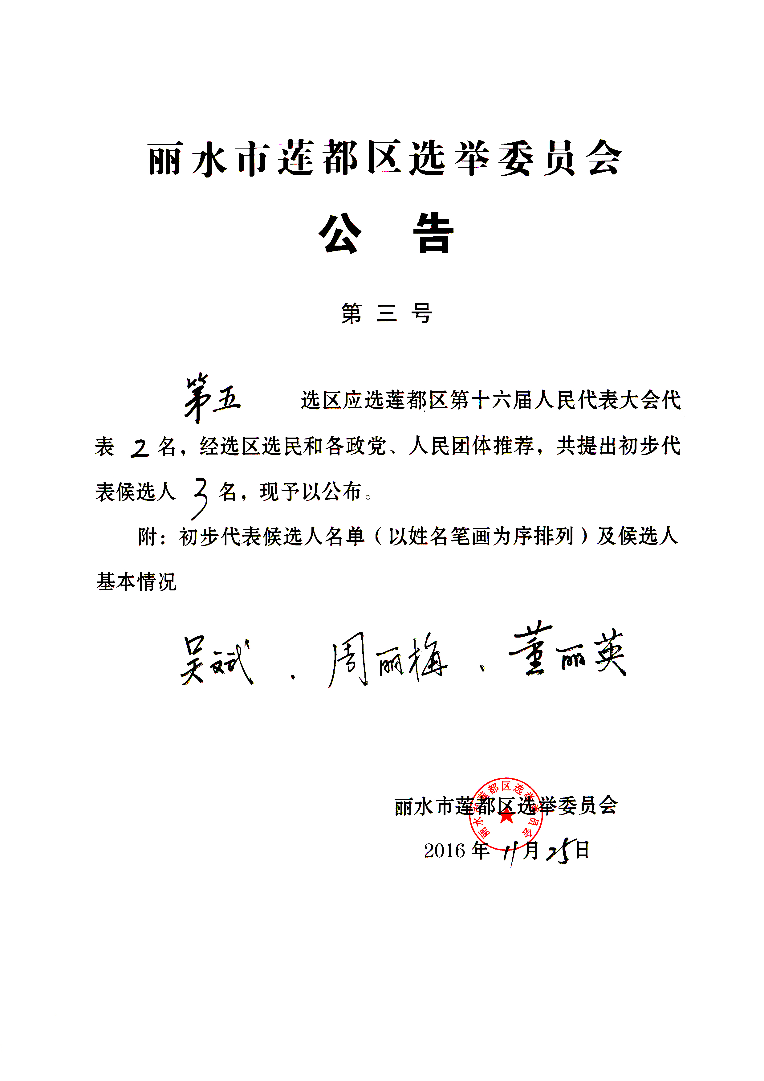 麗水市蓮都區選舉委員會公告( 第二號 )
