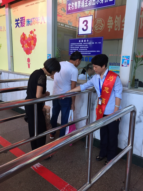 東站志愿者開展“一米線”排隊守秩序引導