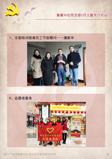 會后,葉學敏書記還代表集散中心黨支部慰問了結對幫扶對象潘新華,詳細的詢問了潘新華的工作、生活和身體情況,并為他們送上慰問金和新春祝福。黨員代表還組織參加了萬地廣場節前旅游安全、文明旅游宣傳的志愿服務。