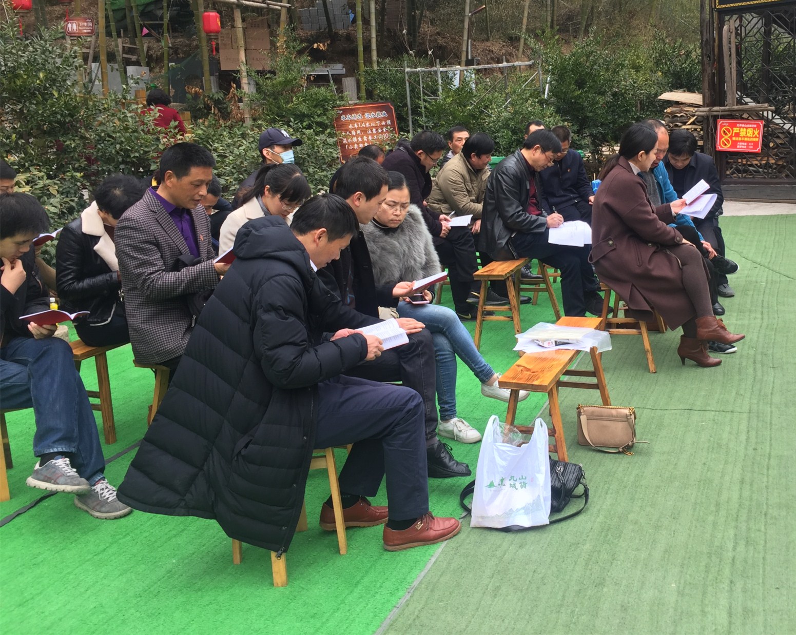本次活動在露天的場地中進行,長板凳排排坐,倒是有一番重溫老一輩革命黨員因條件有限只能在室外開展學習的場景。首先,支部書記王旭帶領黨員們重溫入黨誓詞。本次大會主要意在組織支部黨員開展民主評議、黨員先鋒指數考評。大會還增補了呂勇平同志為支部委員。