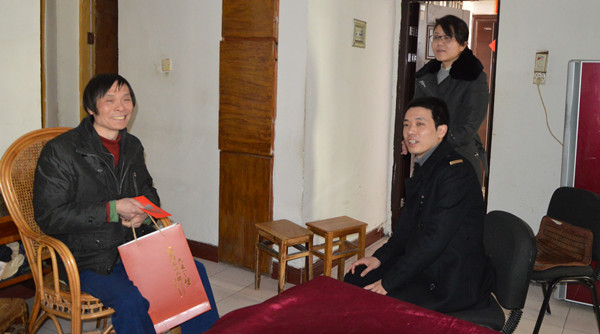 2月12日上午,集團公司機關黨支部書記沈吉彪帶領支部委員到燈塔小區慰問結對幫扶的困難職工王華民,專程向王華民和其家人送上了組織的關愛和新春祝福。